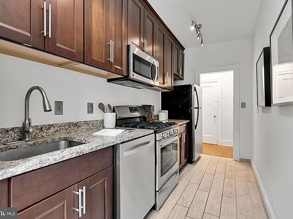 This enchanting one bedroom condo at Wisteria Mansion is a true gem, exuding warmth and charm from the moment you enter. A beautiful corner unit, this condo boasts a wonderfully designed layout that maximizes space and functionality. The unit has been exceptionally well maintained and features a kitchen with modern stainless steel appliances, gas cooking, granite countertops and a cozy breakfast nook. The living room is thoughtfully designed and comfortably sized, making it easy to see yourself at home within these walls. The bathroom, with its vintage aesthetics and a newly re-glazed cast-iron tub, pays homage to the rich history of this grand building. Your spacious corner bedroom is bathed in natural light through three elegant windows, creating a serene and inviting atmosphere. With ample room for your furniture, storage, and that coveted king-sized bed, you'll find your sanctuary here. Solid hardwood floors grace most of the living space, while the kitchen boasts tile floors installed during a complete remodel in 2014. The unit has been freshly painted and new light fixtures were installed in the foyer, living room, and bedroom prior to sale. Storage units are available for rent in the basement of the building. Conveniently located at the crossroads of Mount Vernon Square, Shaw, Logan Circle and the heart of Downtown, this unit offers unrivaled convenience. Just a short walk from the Convention Center, City Center Development, and the 14th Street corridor, the finest dining, shopping, and entertainment await. Commute with ease, as multiple Metro Stations are nearby, offering access to every line. Whether you're a first-time homebuyer or seeking a chic pied-à-terre in the heart of the city, this one-bedroom sanctuary is your ultimate solution. Don't miss the chance to make it your own and experience the vibrant pulse of our nation's capital from the comfort of Wisteria Mansion.