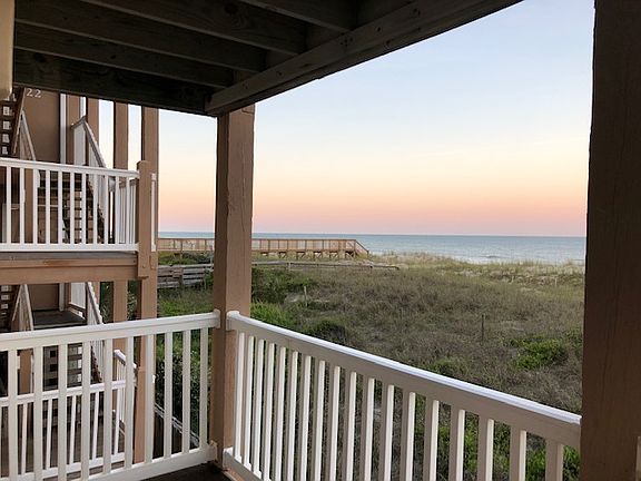 Breathtaking Views of the Ocean from this Updated 2 bedroom/ 2 bath Condo on Beautiful Carolina Beach. Situated on the first floor with parking underneath, this condo has unobstructed Ocean & beach views from the Dining room, Living room & even from the Master Bedroom. This is an end unit that has the extra large wrap-around deck and 2 sets of sliders that allow you to take in the sunrise every morning! The kitchen has been renovated with Upgraded cabinetry, Updated Windows & sliding doors, & HVAC replaced in 2016. Sold furnished including all appliances, just pack your bag & enjoy the beach! Located close to dining, shopping, & Entertainment. Sit on your private deck & take in the Beautiful weekly fireworks throughout the summer. Sand Pebbles has 2 pools, showers, & private beach access.