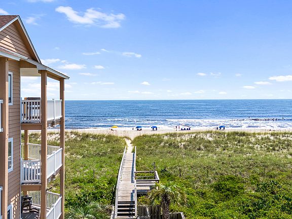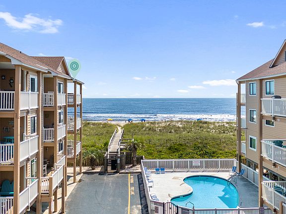 Welcome to your dream coastal retreat at Sand Pebbles Condominiums! This top-floor, corner unit offers 1,167 square feet of beachside luxury with 3 bedrooms and 2 bathrooms, perfectly situated to capture stunning panoramic ocean views. Step into the main living area, where the kitchen boasts ample cabinet and counter space, seamlessly overlooking the dining area and living room. The double sliders in the living room frame the mesmerizing ocean, inviting you to step out onto the expansive wraparound balcony. This oceanfront perch is the star of the condo, offering a front-row seat to breathtaking sunrises. It's the perfect spot for morning coffee, sunset dinners, or simply relaxing with the salty breeze. The master bedroom features an en-suite bathroom, modestly updated with a beautifully tiled walk-in shower. The second bedroom is conveniently located near a full bathroom, and a unique spiral staircase leads to the third bedroom with a cozy sitting area, ideal for a private retreat or guest accommodations. With proven rental history, this condo would make a great investment property or second home. Sand Pebbles Condominiums is more than just a place to live—it's a lifestyle. Enjoy access to two sparkling pools, two private gated beach accesses, and the convenience of being close to Carolina Beach Lake, the Saturday Farmer's Market, the Carolina Beach Boardwalk, and the iconic Ocean Grill & Tiki Bar.