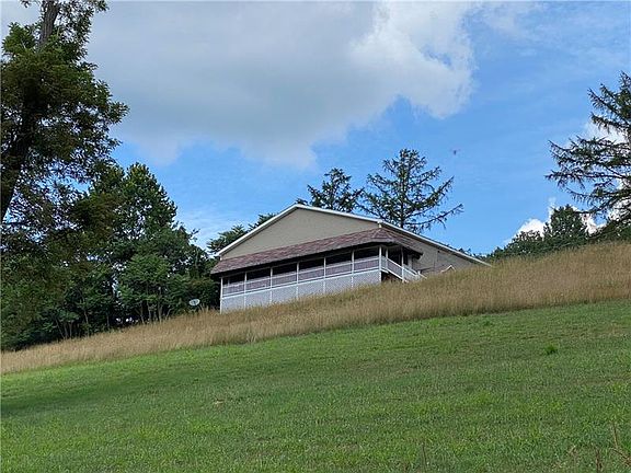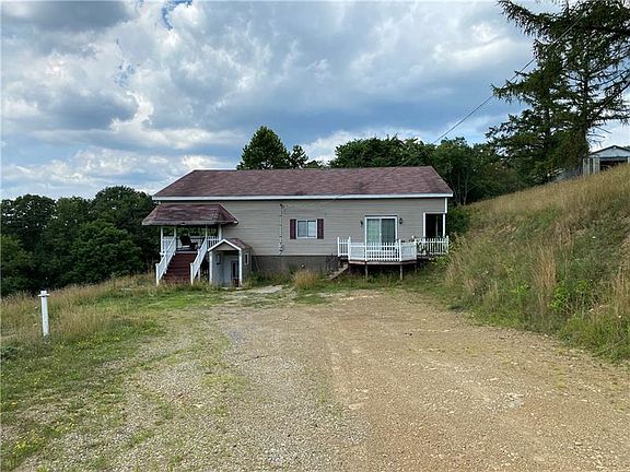 Sprawling home on two levels featuring large rooms, a beautiful wooden spiral staircase, a huge covered front deck and side deck, en suite full baths in the bedrooms, and several bonus rooms that could be used as additional bedrooms, offices, play rooms, or work-out rooms. The galley-style kitchen has ceramic tile flooring and a bar that opens to a massive lower-level family room with a beautiful stone fireplace. Situated in a private location on a secluded 2-acre lot perched atop a hill with amazing country views. The detached heated garage has a full workshop and bathroom and is large enough to hold up to six vehicles. The barn offers plenty of storage, and sits at the top corner of the property. Truly a GREAT FIND and a MUST-SEE!
