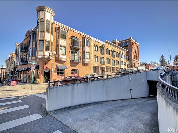 Enjoy the downtown Fairhaven life in this elegant & spacious TOP FLOOR unit, just steps away from numerous restaurants, boutiques, groceries & more! Hardwood floors, tall ceilings, crown molding, granite counters & A/C. Kitchen w/stainless steel applncs & bar. Dining area opens up to large living rm. Sliding glass doors lead out to your deck, which overlooks McKenzie Alley & has a partial bay view! Big bathrm w/jetted tub & separate shower. Secure underground garage & storage closet! New HVAC!