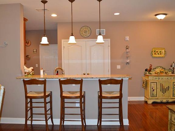 Absolutely magnificent first floor end unit with $45,000 in upgrades! Gorgeous 2 bedroom 2 bath 1,368 sq ft unit in desirable community. Unbelievable amount of upgrades including gleaming hardwood floors and crown molding throughout. Tons of custom rich wood cabinets, custom blinds, high celings, custom vanities and much more! Dramatic kitchen with breakfast bar, granite countertops, and stainless steel applicances. Master bedroom features walk-in closet and full bath with tub and stall shower. Lovely private balcony off living room. Attached over-sized one-car garage, central air and low taxes! Nothing to do but move in!