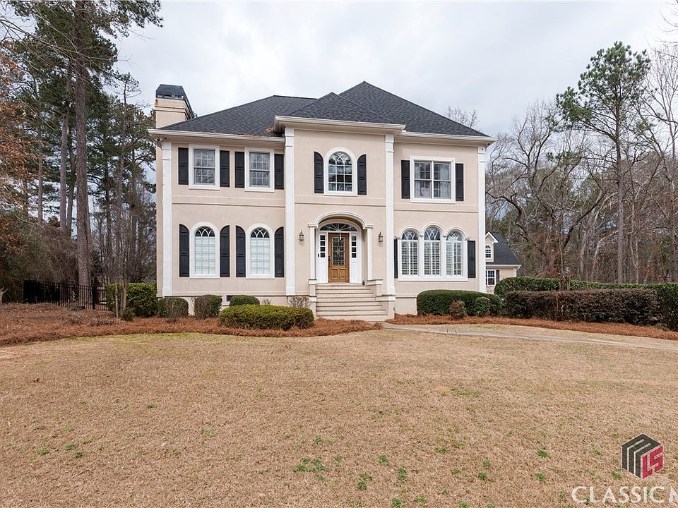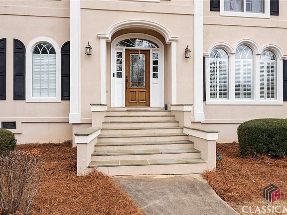 This stately property in Jennings Mill, located on the 6th hole of the golf course, offers not one but two homes. Perfect for a large family or multi-generations. The main house, perfect for entertaining, was built in 1997, is approximately 4200 square feet and features 5 bedrooms and four baths plus a bonus room. The main level has a formal living room, dining room, family room with gas fireplace, eat-in kitchen, half bath, primary suite with ADA compliant bathroom and connected sunroom.. The second floor features three bedrooms, a bonus room and second primary suite with a large walk-in shower, two closets, and a fireplace. Bedroom two has its own private bath. Bedroom three and four share a jack-in-jill bath with double vanities and separate shower and toilet area. Off the third bedroom is a large bonus room which could be a 6th bedroom if needed. The guest house was built in 2004 and is approximately 2000 square feet. The guest house main level has an open living room, eat-in kitchen, and half bath. Upstairs is a large private bedroom and full bath. This space has been used as a separate rental in the past.