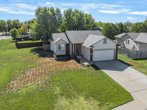 Welcome to your dream home in Derby, tucked away on a corner lot and offering picturesque views of two serene ponds. With its newer HVAC system, this home ensures comfort and peace of mind all year round. Upon arriving, you'll be captivated by its great curb appeal, featuring a partial brick facade and well-manicured landscaping. As you step inside, you'll be greeted by wood laminate floors that flow seamlessly throughout the main level. The living room boasts vaulted ceilings, creating an open and airy ambiance. It's also partially open to the kitchen, perfect for social gatherings and quality time with loved ones. The kitchen is a culinary enthusiast's dream, complete with an abundance of cabinet space, a convenient eating bar, and stainless steel appliances that are all included. Adjacent to the kitchen, the dining area is seated in front of sliding glass doors, offering easy access to the back patio. Retreat to the spacious master bedroom, complete with an en suite bath that features a separate tub and shower as well as a generously sized walk-in closet. A second bedroom and bath on the main floor provide comfortable accommodations for the entire household. The basement has even more living space, featuring a large family room, two additional bedrooms, and a third full bath. This home offers plenty of room to spread out and make it your own! Outside, the back yard is a private oasis enclosed by a wood privacy fence, and it has a patio that invites relaxation, entertaining, and outdoor grilling. It's the perfect place to create lasting memories with family or friends. Located in close proximity to High Park, an array of restaurants, shopping options, local schools, quick highway access, and everything else that Derby has to offer, this home provides a convenient and vibrant lifestyle. Don't miss the opportunity to make this Derby gem your own. Schedule your private showing and come see it today before it's gone!
