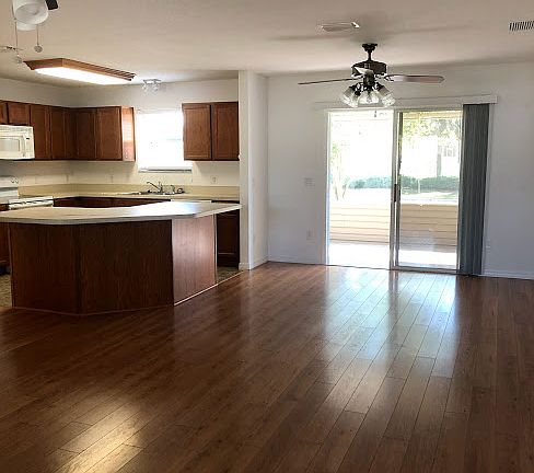 This 3/2 Amarillo model is convieniently located in the Village of Hemingway. Laminate floors throughout/vinyl kitchen and baths. Freshly painted with tile in both the lanai and front screened in porch. Ceiling fans throughout. Located between 2 regional recreation centers and close enough to easily walk to the pool. This home is ready for you to move in and decorate. Call for appointment.