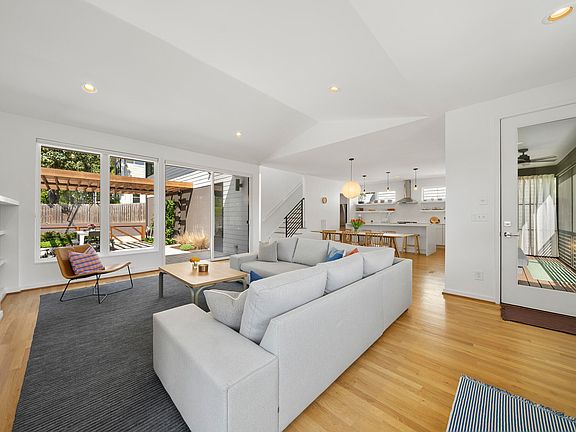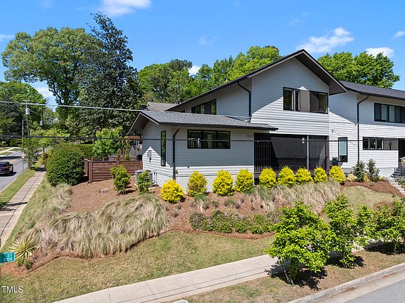 This well-crafted home in East Mordecai is minutes from downtown Raleigh and walking distance to parks, restaurants, nightlife, and retail. Designed by In Situ Studio and meticulously maintained, it features an abundance of natural light, vaulted ceilings, and hardwood floors throughout. The first floor features a wide open floor plan, including a beautiful kitchen with a waterfall island and induction oven, a pantry and laundry room with ample open shelving for storage, and a living room with large sliding glass doors and a gas fireplace. It's easy to enjoy outdoor living in this home with a fully screened in front porch, and a backyard outdoor space redesigned in 2023, including a new pergola and ceiling fan. The terraced backyard also features multiple seating areas and beautifully landscaped gardens. An attached 2-car garage is a hidden bonus in the back of the home. The second floor includes a spacious master ensuite with a large walk-in closet. Two additional bedrooms along with a second full bathroom are just down the hall, followed by a generously-sized den/office/playroom. This home is not to be missed!