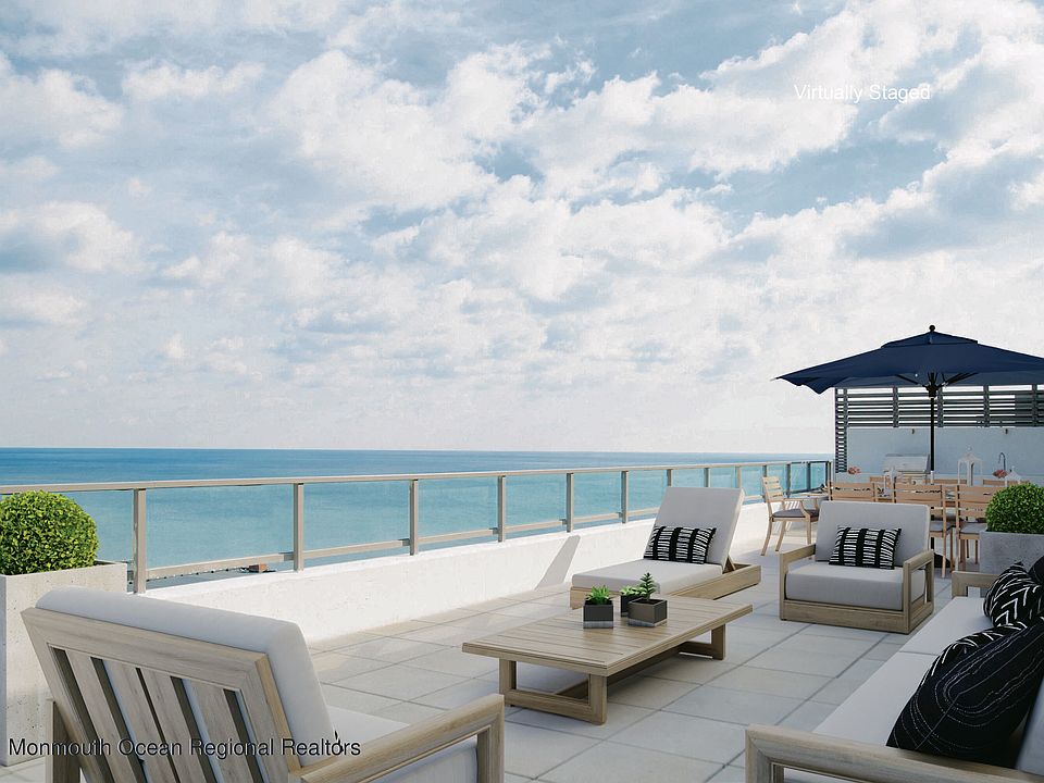 The Ultimate Beach View from Penthouse C at Asbury Ocean Club is luxury living at its best. This one-of-a-kind duplex home exudes elegance with sweeping ocean views for miles down the coast and historical Asbury Park. With over 2,294 square feet of interior living space, this home features 2 bedrooms all with direct access to the terrace - two baths and two powder rooms. The kitchen comes equipped with a Miele appliance suite, quartz countertops, custom cabinetry by Spazzi of Spain, 7'' wide plank white oak flooring throughout, and floor-to-ceiling hurricane impact windows. The expansive living and dining room have direct access to the outdoor room perfect for taking in the views and entertaining. Take it all in on the rooftop terrace, complete with outdoor kitchen and Viking gas grill