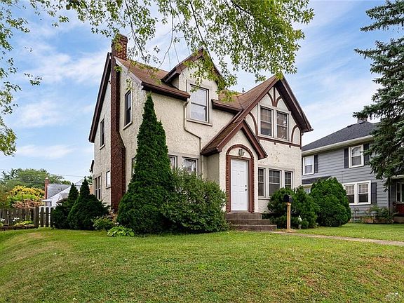 Nearly 1,500 sqft offered by this 3 bedroom home complete with a TWO car garage! So much charm! Spacious front living room with central brick fireplace and lots of natural light. Gorgeous hardwood floors throughout the main floor. French doors off the living room lead to a bonus sun room, perfect for a home office or playroom. Updated kitchen with adjacent dining room. Located on the second floor are three bedroom each with multiple closet/storage areas. Full bathroom also upstairs. Tons of potential for additional square footage offered by the large unfinished basement. Expansive back deck overlooks the oversized fenced in backyard. This one of a kind home is a MUST SEE!