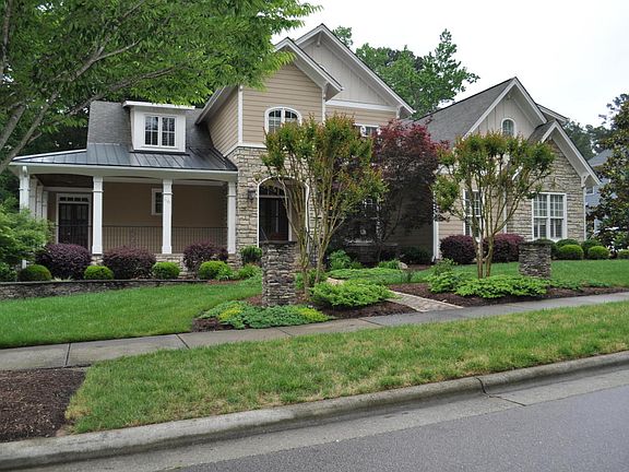 There is no doubt, that this custom home is located on one of the best lots in Meadowmont! Built in 2003, this tri-level home residence offers over 5000 sq. ft. of spacious living with 4 bedrooms and 4 1/2 baths. The beautifully designed home creates a distinctive setting for indoor and outdoor living. Enjoy views of wooded backyard with small creek located at the end of the property. Grand foyer opens onto the expansive main level with custom molding, stone fireplace and built-in-cabinetry. The kitchen and breakfast room also capture views of the large private backyard. Kitchen features bar area, walk-in pantry, island, double ovens, gas cooktop, granite surfaces with loads of