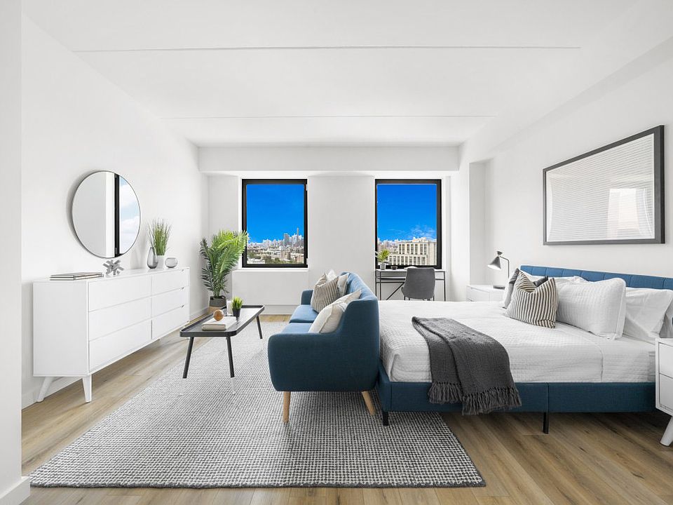 In-unit washers and dryersModern matte black hardwarePrivate outdoor balconiesSprawling views across brooklyn