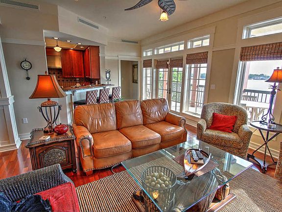 Lowest priced fully furnished three bedroom, three bathroom lakefront condo in Wild Heron. This absolute masterpiece is located in the most desirable building in Lakeside Lodge, the Noontide building. This fourth floor condominium is an end unit and boasts forever, panoramic views to the east and west overlooking the rare coastal dune lake, Lake Powell. The owner of this condo spared no expense when furnishing this condo with high-end furnishings for the most discerning buyer. This condo is laid out in a desirable split floor plan with a private master bedroom and en-suite master bathroom on the opposite side of the condo from the guest bedrooms. The open floor concept is perfect for entertaining with the kitchen facing toward the living room.