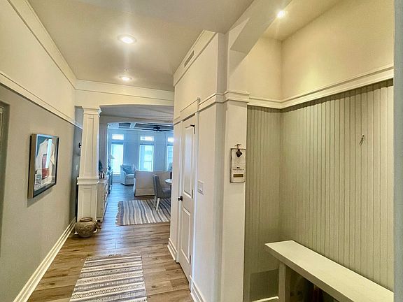 - Beamed Ceilings, Crown Molding, High Ceilings, Recessed Lighting, Pantry, Shelving, Split Bedroom, Woodwork Painted, Woodwork Stained, Bedroom, Kitchen, Living Room, Master Bathroom