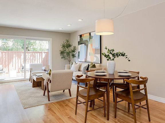 Move in ready condo in desirable Sunnyvale Meadows Community! Terrific floor plan which features an open concept kitchen with breakfast bar, spacious living/dining combo, and a half bath on the ground level. The spacious patio off the living room provides a great space for relaxing and outdoor entertaining. The upstairs features 2 large bedrooms, laundry, and a full bath! Lovely kitchen with stained maple cabinets, granite countertops, and stainless-steel appliances. Other features include updated bathrooms, recessed lights, ceiling fan, double pane windows, recently upgraded electrical service panel, new interior paint, and new carpet! HOA dues include water, garbage, community pool, and much more! Prime Sunnyvale location with close proximity to Ponderosa Park, Apple Park, Nvidia, shopping, restaurants, and many high-tech companies!