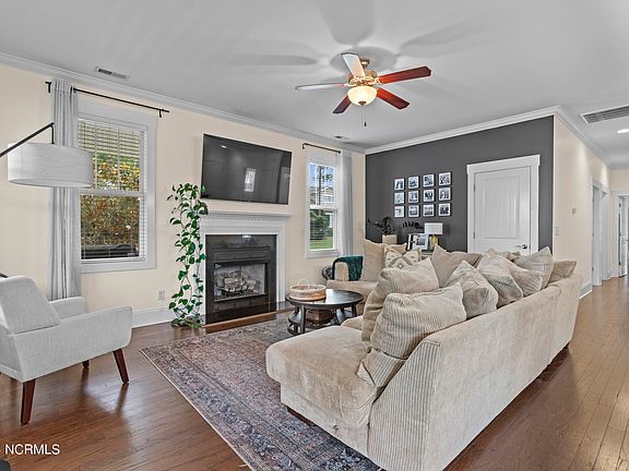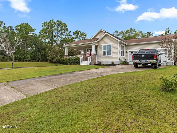 Welcome to the sought after community of Neighborhoods of Holly Ridge! Just a hop skip and jump to Surf City, Topsail Island, and a short drive to Stone Bay. This gorgeous 3 bedroom, 2 full bathroom bungalow is filled with tons of upgrades and updates and sits on a stunning cul-de-sac corner lot. The inviting front porch overlooks the gorgeous neighborhood greenery, it is just missing your rocking chairs! As you enter the front door, you are greeted by an open concept living, dining, and kitchen space! Don't miss the beautiful natural lighting, fireplace, and feature wall. The kitchen offers granite countertops, stainless steel appliances, and a large bar area perfect for entertaining. The two guest rooms are located down the hall and share a full bathroom. The owners suite sits at the back of the home and features an ensuite bath with a seperate tub and shower, walk-in closet, and sliding doors leading out to the new deck! This home is a must see. Schedule your showing today!