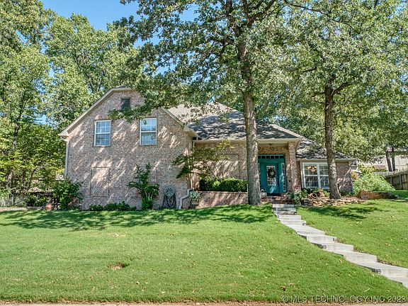 Spectacular blend of form and function in this entertainer's dream! The entry is bright and welcoming and crown molding and high ceilings run throughout the main floor! The wood floors add a unique flair too! The family room is cozy yet open and the craftsman style fireplace/bookshelf surround are a great design element. Blond wood cabinets pair beautifully with granite counters and stainless steel appliances. The primary suite is a great retreat with its high ceilings and a spa like bathroom with deep garden tub, walk in shower and towel warmer! The additional bedrooms are all spacious and the 4th bedroom would make a great gameroom if that is more your style. The outdoor spaces are also amazing for entertaining! the covered patio comes with a complete outdoor kitchen and bar space and there is second patio space to catch the overflow if you need it. The side entry garage also has an extra long drive to handle parking all those guests or to keep your extra equipment handy! The neighborhood is quiet and enveloped in beautiful mature trees. Conveniently located, this one will give you access to 412 for an easy and quick commute to Tulsa for work or all the nightlife that Downtown Tulsa has to offer. Call for your private tour of this beautiful home today!