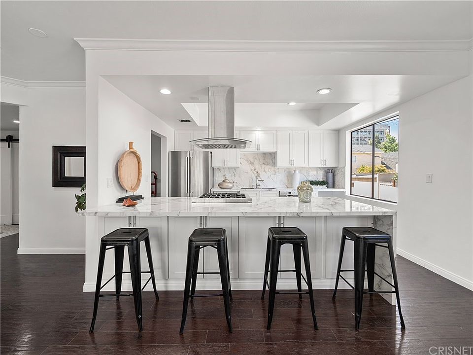 One of only a few available condos in a half-mile radius! This fully remodeled one of a kind modern unit boasts almost 1500 square feet of living space along with 2 large bedrooms and two beautifully remodeled bathrooms. Espresso-colored engineered wood flooring highlights this corner unit which also has LED recessed lighting along with a brand new Samsung washer and dryer in the unit. Located directly across the street from world-renowned Beverly Hills, this unit is sure to appeal to the masses. Some of the kitchen features include a 3 bay stainless steel sink, new refrigerator, and 2 new Bosch dishwashers. A large custom porcelain countertop (approx. 9 ft. x 4 ft.) opens to a warm and inviting open concept living/dining room with tons of natural sunlight. If you're looking for a clean, contemporary feel in a superb location, this fantastic condo is what you've been waiting for!