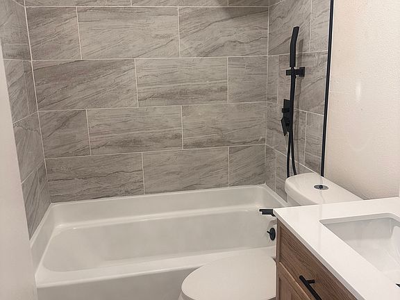mazing house! Completely remodeled and redone property from the studs up: foundation, electrics, plumbing, sewer, floor plan, new kitchen, bathrooms and so much more! This house features an open space floor plan with original resurfaced hardwood floors throughout main living space, hallway and 3 kids bedrooms! Kitchen is completely new with beautiful tiled flooring, soft close cabinets, granite counter top and subway backsplash. There's room for washing machines and fridge- comes equipped with a stove. Each bedroom features its own mini split a/c unit, ceiling fan and huge closet. Kids bathroom has a bathtub - master bath has spacious walk in shower. If that is not enough: property has a covered front patio, privacy fence, detached garage and back storage unit! This one won't last long- come make this your new year home
