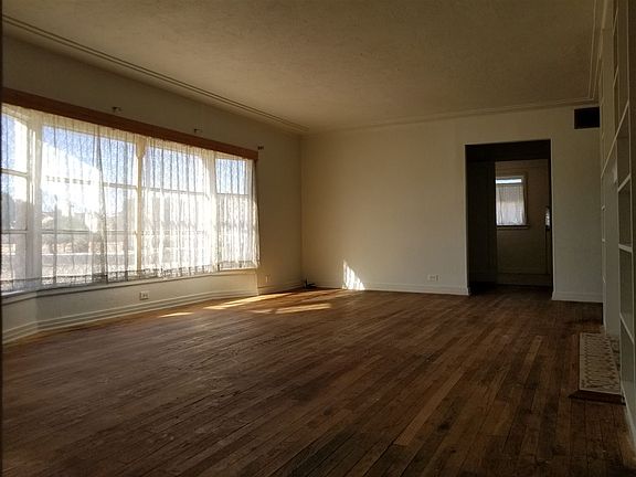 HUGE corner lot home, with lots of potential. Home features new interior paint throughout, three bedrooms, two baths, large living room with a built in entertainment center around a fireplace. The home has beautiful wood flooring throughout ready for someone to bring it back to life. Master bedroom has beautiful high ceilings with french doors leading to the back yard. The back yard is fully fenced, includes double gates and a fenced in carport attached to the home.
