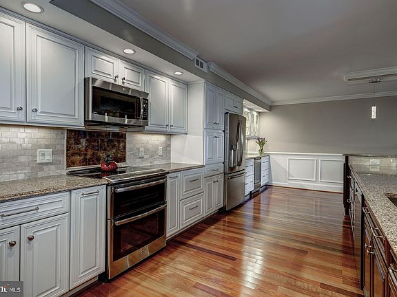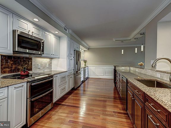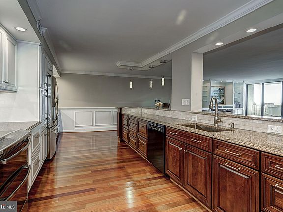 This spectacular unit has been completely renovated and reconfigured like no other unit in the building. As you can see from the photos, this home invites you to come home and unwind while cooking a leisurely meal that you can enjoy out on your balcony, weather permitting. It is also the perfect place to entertain because the guests have plenty of space to gather around without the kitchen ever being crowded. This Chef's kitchen boasts cambria counter-tops covering the 17 foot kitchen island, double oven, an Advantium convection microwave, wine cooler/beverage center, custom lighting, and enough counter space and cabinet storage for two chefs. The living room's handcrafted entertainment center has shelving for your favorite books and art pieces as well as a place for all but the largest TVs right above the fireplace. The guest room/study has a built-in desk and roomy closet. There are Brazilian cherry floors throughout. Both full baths have marble heated floors and glass shower doors. The master bath has a double vanity sink and lots of storage for linens and toiletries. In the huge master suite is a walk-in closet with built-in racks, shelving and drawers. Your washer/dryer are conveniently located in the master bedroom in a separate closet. While others are commuting, you can enjoy spectacular views of the Washington Monument and other landmarks from your balcony, walk to Pentagon City Metro, restaurants, and shopping in 10 minutes. You can conveniently work out in the gym or lounge at the outdoor pool. You will also have access to a handy private storage room fitted with Elfa shelving on the same floor.