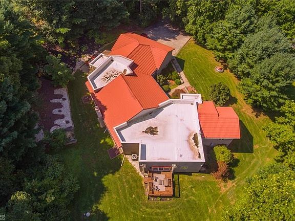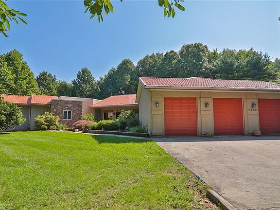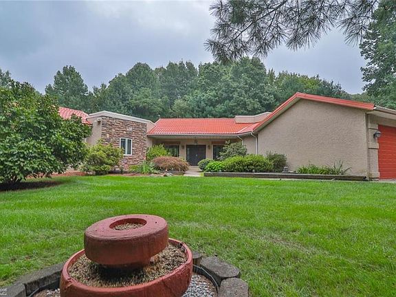 Sprawling Spanish style Stone & Stucco RANCH home situated on 2.48 acres in a very private idyllic setting. Enter through over-sized ornate double screen doors and solid oak wood door leading into the 37' entry way with tumbled marble floor. Flowing into the open concept Living Room and Dining Room w/ new (2020) gas fireplace. Updated (2020) spacious eat-in kitchen with new granite countertops, sink, faucet, range, refrigerator and tumbled marble floor. Bathrooms all updated in 2020. Master bedroom has a private deck, 2 walk-in closets, full bath with separate shower, jetted (oversized) tub, double sinks and mirrored dressing area with vanity. 2 additional bedrooms and bath. New well pump 2018. New roof 2015. Electric fence. 3 car garage with 10 doors, plus add'l garage door in the lower level with accesses the workshop. 2 Heat pumps. Relax and enjoy nature on the new paver patio and outdoor fireplace. 2023-07-05