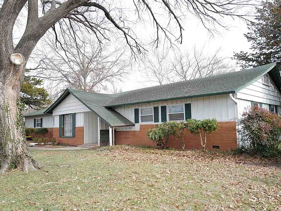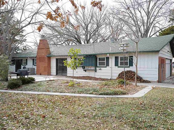 This three-bedroom, two-bathroom home was built in 1958, but with numerous updates since. There is a room off the main living area that could be utilized as an office or fourth, smaller bedroom. The unique character with the fireplace and well maintained outdoor space make this home one-of-a-kind. The mature landscaping makes for an in-town private oasis. The back patio and new driveway were redone in 2016. The two-car garage features a large storage room and in-ground storm shelter with a new garage door installed in 2013 with remote access and a keypad. The sewer line is 100% PVC with a clean-out and new to the city main completed in 2014. New gas hot water tank with circulating pump in 2015, new toilets, new bathroom, and kitchen faucets, and new hot/cold water supply PEX lines with a new PVC drain throughout the entire house. This home has vinyl windows, a large utility room with a sink and extra storage, built-in cabinets in the hallway, new patio lights, and new ceiling fans.