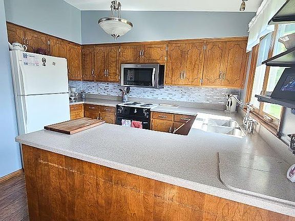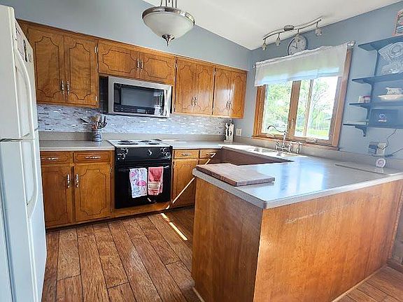 This well-kept home nestled on the outskirts of town awaits you! With two covered porches and beautifully manicured landscaping, this property is sure to impress. Step into the main level- complete with a spacious U-shaped kitchen w/peninsula and room for dining room table. Entertain guests in the formal living room, with natural light pouring in through west-facing windows. Enjoy two cozy bedrooms, an oversized bathroom, and a half bath near the entry. Plus, a versatile 3rd bedroom, currently serving as a family room, complete with a cozy fireplace. The lower level boasts a fantastic bar/island, ideal for hosting gatherings, along with an open concept living room, another bedroom, full bath, utility room, and a walk-out to the expansive backyard. There is a double attached garage and small shed in the backyard. This home features 36-inch doors and wide hallways, making it easily accessible for wheelchairs. This one just feels like home. Come explore this stunning home today!