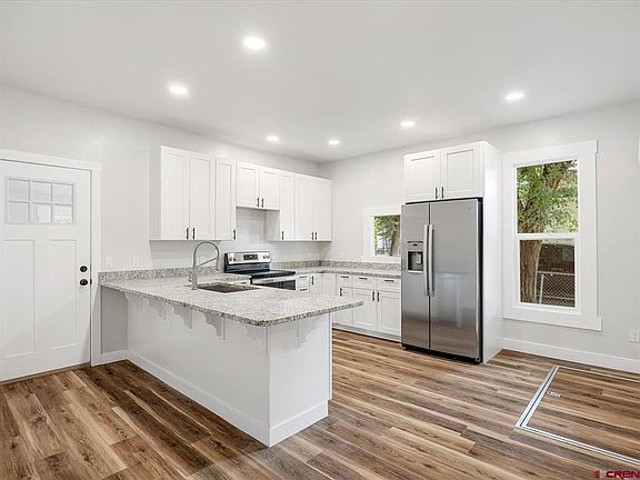 Remodeled Downtown Gem with Excellent Finishes, Location, and Potential! Boasting a complete interior transformation, a large corner lot with off-street parking, and fully-fenced, enclosed room for RV's and trailers, this property embodies versatility and value on all angles. Step inside to a welcoming living area with new carpet and lighting. Throughout the entire home you will find new windows, all new flooring, solid doors and trim, as well as new and hyper efficient space heating and cooling units. Enjoy natural light streaming through the functional floor plan as you do yoga, work from home, and enjoy all the benefits of a practical layout. The kitchen is a dream, and features gorgeous granite countertops, soft close custom wood cabinets, and is well illuminated with large windows and sleek can lighting. Off the kitchen you have the added functionality of a large mud room and walk-in pantry closet, as well as a dedicated laundry room. Unexpected and generous storage space is also provided with large walk-in closets in both of the bedrooms. Sip your favorite beverage on the front porch while taking in the hustle and bustle of the city, and enjoy ideal walkability to the hospital, great schools, breweries, restaurants, and all that the Montrose metro has to offer. The large lot would also accommodate an addition or a detached shop/garage with ease. Solidify Your Assets With a Quality Short or Long Term Rental, or Make the Dream a Reality for Yourself with This Downtown Exclusive; Take a Tour Today!