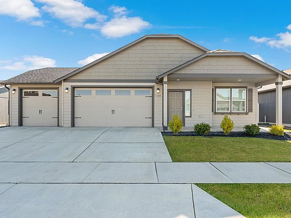 Discover effortless living with this beautifully appointed no-step rancher in Pillar Rock Estates! Spanning 1,586 SQ/FT, 0.22 ACRE lot, 3BR/2BA, 3 car GARAGE-Extended w/8FT garage doors/opener - man door/slab from-to covered patio. This one-level home includes an open-concept design with 9FT ceilings throughout. Gas fireplace with mantel/screen wiring, wood wrapped windows & doors/4IN trim. The spacious kitchen, with an oversized eating bar, is perfect for entertaining. GE gas stove/microwave/dishwasher, 33IN tall custom hunt-wood cabinets w/chrome handles, lots of counters in kitchen&bathrooms, oversized pantry. Primary suite is a true retreat, featuring a walk-in closet/double sinks, garden tub/shower combo, compartment toilet w/window. Of the great room, a separate laundry room. 2 Bds share a hall bath, separate from primary. Landscaped/fenced. Spacious driveway. Conveniently located mins to lakes, recreation, shopping, schools, entertainment, hospital, Fairchild AFB.