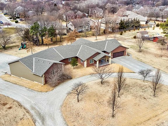 Gorgeous Custom Built Home on 1.44 acres IN DERBY! Includes a 2543 Square Foot Shop with 18x13 Overhead Doors and a Garage with an Office, Full Bath, cabinets and a loft, newly epoxy floors, multiple 220's and an RV outlet. Garage is 2x6 insulated R-19 and heated and cooled. Home was originally built in 1974 and striped down to the concrete foundation and totally rebuilt in 2010with new framing, wiring, plumbing and sewer. 5 bedrooms all with walk-in closets (2 main floor Masters with private baths). 4.5 bathrooms,1942 Square feet main floor with wood floors and granite. Full finished Basement. Inviting Covered Front Porch Patio and Circle Drive. Main Floor and Basement Laundry. Entertaining 20x12 Covered Side Patio for Grilling and Relaxing. Home is all Electric with Blown in R-38 Attic and R-15 Walls. Home has a heat pump and pellet Furnace for Low Winter Bills. 400 amp Electrical Service. Large Back Pack Med Room off Front 2 car garage perfect for unloading. Nice Magnolias, Oaks, Birch and Maple Trees. Custom Tree House/forts, playset, exterior painted 2 years ago. Newer Carpet.