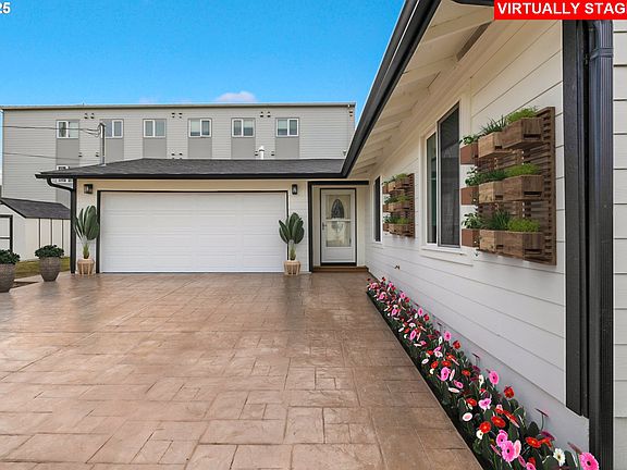 Beautifully remodeled rambler with open concept living and kitchen. Spacious kitchen with new cabinets, stainless steel appliances, quartz countertops, and large island. Home features 3 bedrooms and 2 full bathrooms completely updated. Primary bedroom with ensuite bathroom & double closets. Oversized 2 car garage with extensive hardscaping driveway and ample space for cars and RV parking. Garage finished with new garage door, fresh paint, and epoxy flooring. Renovations include new roof, gas furnace, water heater, central air conditioner, fresh exterior & exterior paints, laminate and vinyl floorings, fixtures, carpet, gutters, landscaping, hardscaping. Located in Newberg central, short distance to schools, parks, stores, George Fox University, and easy access to Hwy 99. Move in ready, MUST SEE!