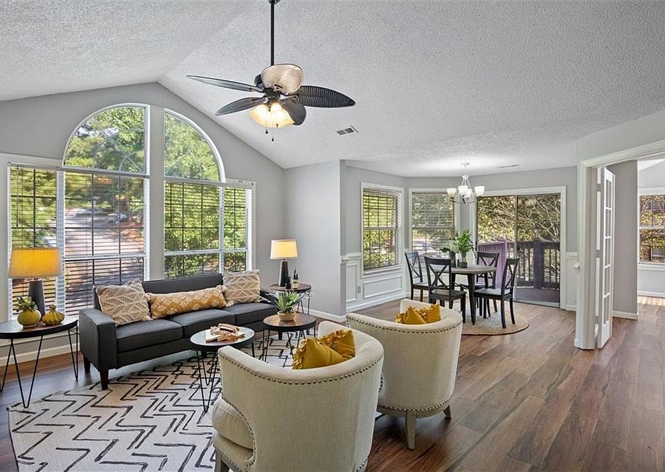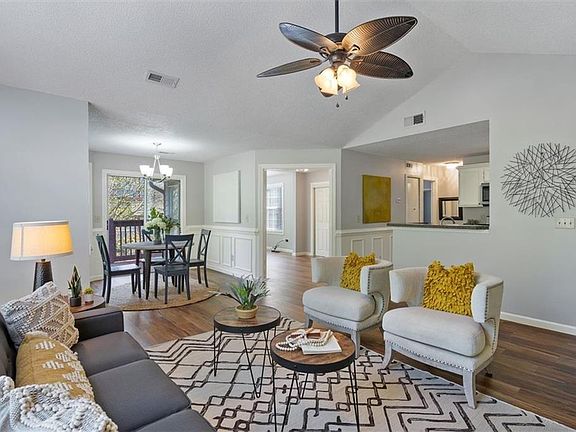 Gorgeous top floor 3 bed/ 2 bath condo in Rivermont Village Community. Home features spacious living room with vaulted ceiling, fireplace, large bay windows and lots of natural light! Laminate flooring throughout! Upgraded Kitchen with stainless steel appliances. Step outside to your private deck, perfect for relaxing w/ morning coffee! The 3rd bedroom can be used as den, bonus room or office! Friendly community, close to shopping, dining, walking trails and the Chattahoochee River.