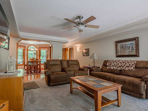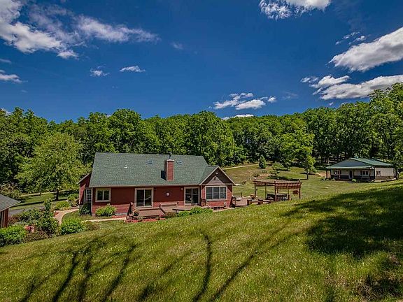 Private 12.18 acre paradise featuring a stunning 4 bedroom, 3 bath home, additional 2 car garage, outbuilding, and 12.18 beautiful acres. The custom home fts. main level laundry, kitchen/dining, main bedroom suite, 2 bedrooms & a full bath, living room w/ fireplace, and a 4-season room opening to a gorgeous patio & deck. The second floor bonus-room is great flex space (studio, work or school from home, living space, etc.) and the expansive finished lower level includes a sprawling living area, library/office, workout room, wet bar for entertaining, 4th bedroom, full bath, finished utility room, and plenty of storage. The 32x36 outbuilding is just as good looking as it is useful and the additional garage is great for toys. Roof, exterior and mechanicals are all newer!
