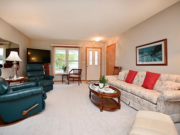 This spacious home is located in a cul-de-sac as you enter Rushford and is backed up to a wooded area and creek. As you enter the home, you have a view through the patio doors to the private wooded back yard. Not only does this home have a front porch to enjoy, but it also has a lovely back deck to relax at the end of the day. This home has 2 large bedrooms and 3 bathrooms on the main level as well as the open concept living room, dining, and kitchen areas. This home provides main level living with the laundry room located conveniently off the kitchen as you enter from the garage. Bonus: a full basement with a finished large family room, and additional room for expansion. The 2 car garage is extra deep - square footage of 870.