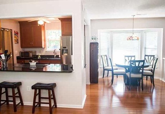 Open single story floor plan with features that include new solid bamboo flooring, beautiful 2013 open kitchen with stainless appliances, cathedral ceilings in the living room and a brick free standing fireplace with mantel. Large master bedroom with walk in closet and plenty of room for a king sized bed, garden tub in master Bathroom with rainfall shower head, dual flush toilets in master and guest bathroom. Green features include Nest Internet Connected Thermostat! Cozy features include a wood burning brick Fireplace and for perfect summer living a glass enclosed, screened-in sun room/back porch with multicolored slate flooring. Security features include motion-detection lighting in front and back and pre-Installed alarm System. Plantation blinds on all the windows, double attics, plenty of off-street parking in paved driveway and good sized attached garage. New Roof (2013) Transferrable Termite Bond and All this on a huge .26 acre large fenced-in lot.