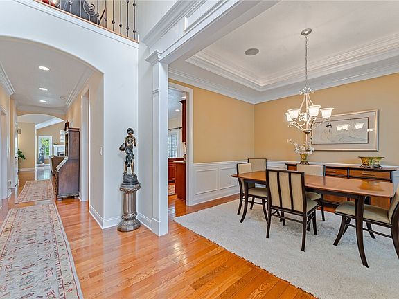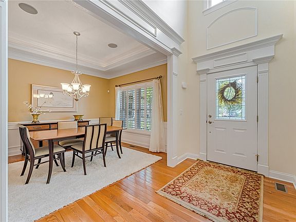 This dream home is perched on a cul-de-sac in the desirable, low-maintenance community of The Village of Treesdale! As you enter the breathtaking two-story foyer, you’ll notice gleaming hardwood floors, 9-foot ceilings & abundance of natural light. The main floor boasts a grand living room with vaulted ceilings & a cozy fireplace, an Eat-In Kitchen with high-end appliances, a large formal dining room & the main floor Owner’s Suite with a luxurious ensuite bathroom with glass enclosed shower, separate soaking tub, dual vanity & a huge walk-in closet. Upstairs, you’ll find a lovely loft overlooking the main floor, perfect for a sitting room or home office, as well as 2 additional bedrooms, a bonus room & a full bathroom. The expansive finished basement offers a wet bar & living area with a large screen TV, sound system & plenty of storage. The lovely outdoor areas include a concrete patio off of the lower level & a private deck off of the living room, both with a serene, tree-lined view.