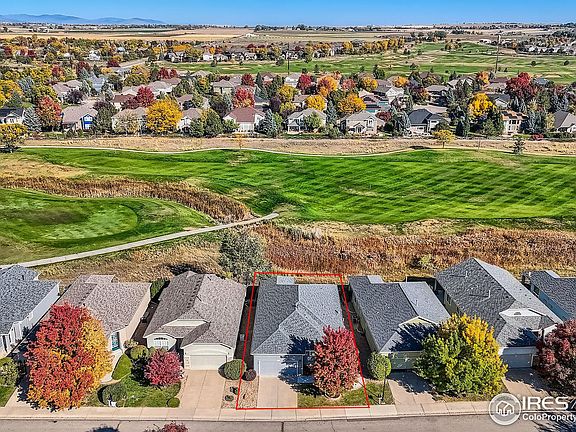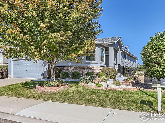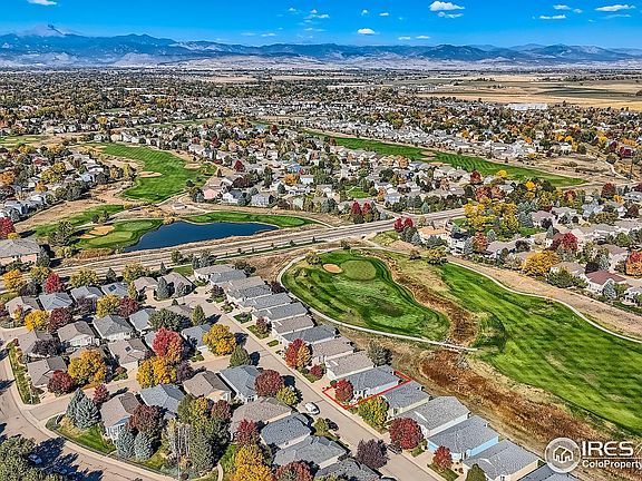 Discover one of the best lots in this exclusive patio home community, perfectly positioned for privacy and entertaining. The newly added, maintenance-free covered deck offers peaceful views of Ute Creek Golf Course's 11th green and Longs Peak. This gorgeous ranch-style home boasts an open and efficient floor plan, ideal for modern living. The open kitchen features beautiful wood floors, lots of cabinets, hard-surface countertops, pendant lighting, and a walk-in pantry, all flowing seamlessly into the gas fireplace-accented family room and formal dining area-perfect for still taking in the stunning views. The spacious primary suite includes a sitting area, luxurious 5-piece bath, and walk-in closets, while the second en-suite bedroom offers flexibility for a study or guest room. Energy-efficient upgrades include brand new triple-pane windows and custom blinds on main floor plus 2018 97% Efficient Furnace, AC and Humidifier and 2020 50 Gallon Water Heater. The main floor laundry room is well-equipped with a wash sink and folding station. The finished basement is perfect for entertaining, with a large recreation room, third bedroom, full bath, and a cozy family room wired for surround sound, plus a wet bar for hosting. Additional highlights include a 2-car garage with a workbench and bike lift, plus new concrete front sidewalk and covered porch plus hand railing. Maintenance-free living with Stone and Stucco exterior and the HOA manages lawn care and snow removal. 2018 New Roof. Chair lift included. Radon system installed. Don't miss this rare patio home offering!!