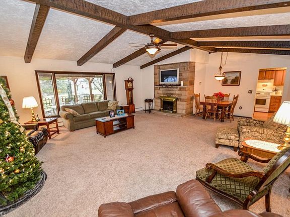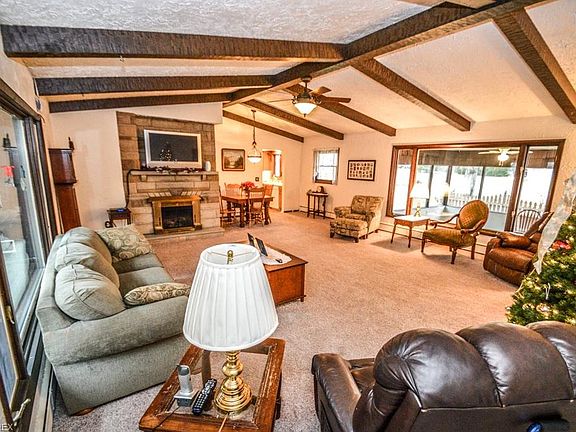 Beautiful ranch home with a gorgeous park like setting. Nothing to do but move in and start enjoying your new home. Large great room with vaulted ceilings, 2 large picture windows provide tons of natural light and beautiful views of the backyard also there is a gas fireplace for those cold winter nights. Updated kitchen features Hickory cabinets, spacious eat-in area and plenty of counter space. Large laundry/mudroom with access to the backyard. Three generous sized bedrooms including an owner's suite with full bath and a bonus room perfect for a home office. Two full bathrooms, both have been updated in 2016. Wonderful heated 3 seasons room at the front of the house. Enjoy your summer evenings on the large deck overlooking the private back yard. Updates include bathrooms '16, water heater '16, all new carpet '16, fridge '16, roof, gutters, soffits and exterior painted 2011. Do not pass this beautiful home up schedule your showing today