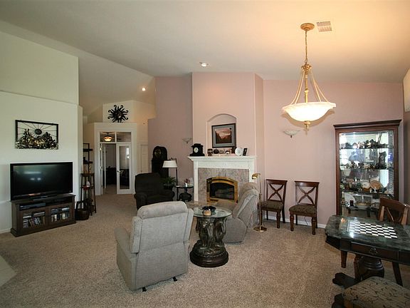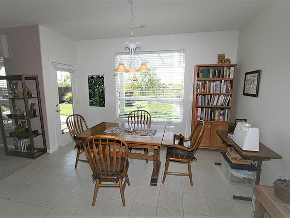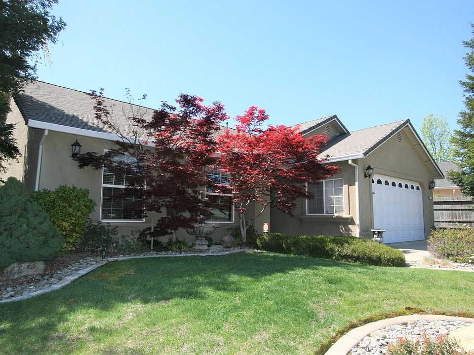Turn key Shasta Hills Estates home on ridge with views of greenbelt, valley & city. Level lot for easy access. Former owner upgraded many features throughout home when built including marble floor entry & fireplace mantle, expanded kitchen, tile floors in kitchen/dining area, inset for artwork in hallway & large covered patio. Owner replaced carpet & repainted interior in 2016 & installed new roof in 2017. Den could be used as third bedroom if closet added. Walk-in closet in master. Stall showers in both baths plus jetted tub in master. Spacious kitchen with island breakfast bar & large pantry. Indoor utility room with lots of cabinets & mud sink. Garage with newer garage door. Freestanding cabinets & gun safe in garage stay. One owner has to be 55 or older to qualify to live here. Sharp