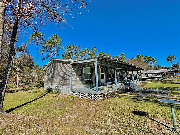 This like-new 3-bedroom, 2-bathroom mobile home, set on a 1/2 acre lot in Steinhatchee, offers the perfect blend of modern living and outdoor space. Located just off a paved road, the home provides easy access while maintaining a peaceful, country setting. Inside, the open-concept living area is bright and inviting, with updated finishes and a spacious layout perfect for both relaxing and entertaining. The kitchen is well-appointed with modern appliances, plenty of cabinet storage, and a large island. The master suite includes a private spacious bathroom, while the additional two bedrooms offer generous space for guests or family. The fenced yard adds privacy and security, ideal for pets or children to play. A small shed provides extra storage for tools, equipment, or recreational items. The 1/2 acre lot offers plenty of space for gardening, outdoor activities, or future additions like a carport or even a pool! This property is located in a no-flood zone and is close to the best of Steinhatchee's outdoor activities, including fishing, boating, and local dining. Whether you're looking for a full-time residence or a vacation retreat, this property is ready for you to enjoy the relaxed Florida lifestyle. Call today to schedule your private tour!