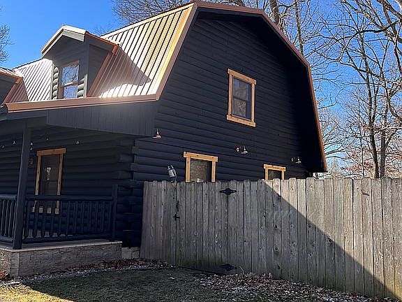 Have you dreamed of living in a log home? Here's your chance! Sitting on a double corner lot in the desired Mahomet School District, this 4 bedroom, 4 full bath home has a deep 2 car garage and detached 1 car garage. From the cedar screened-in porch, you can enjoy the sunset and mature landscaping. The spacious living area has high ceilings, custom log stairs, cherry floors along with an amazing floor to ceiling stone fireplace. The eat-in kitchen has Corian countertops and stainless steel appliances. The main level master suite has a large walk-in closet and a master bath with dual rainfall shower heads, a separate soaking tub, waterproof and heated floors to give you that spa experience. Upstairs, the family room overlooks the living room and includes a second master suite with his and hers closets.
