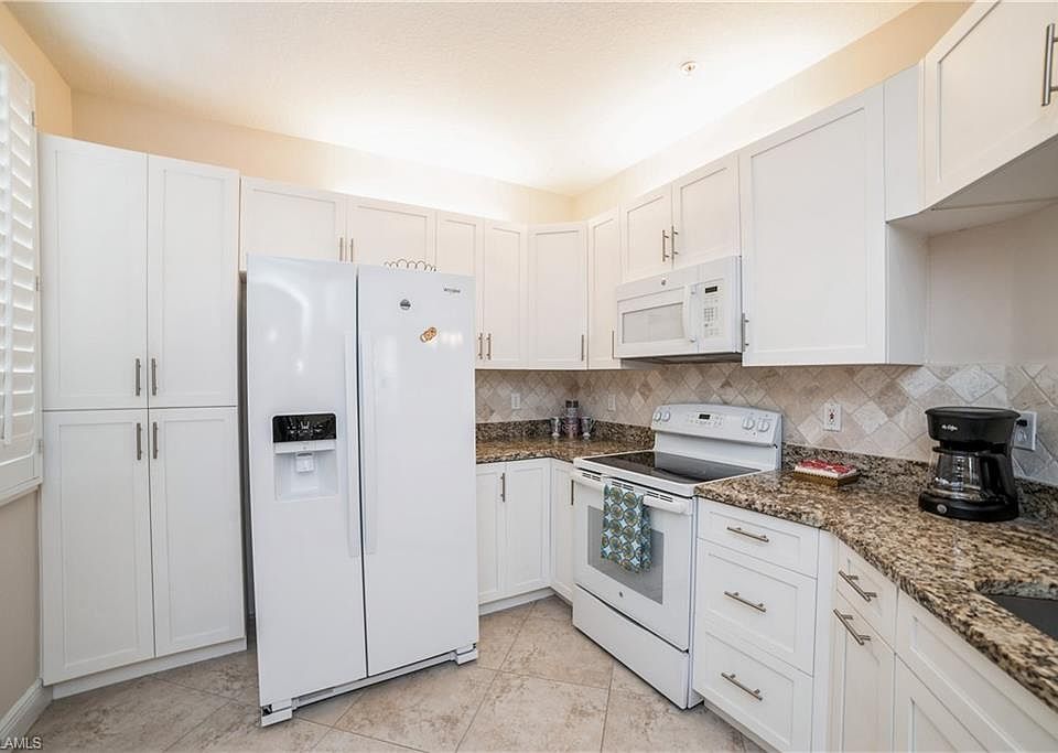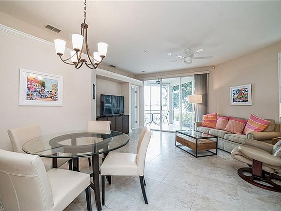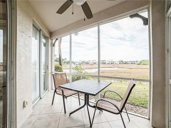 Direct water and marsh views, fabulous sunsets and a great location in the community. Short walk to the pool, clubhouse and mailboxes. This lovely 2 plus den, end unit, first floor turnkey furnished condo has been completely remodeled, tastefully furnished, and maintained in A1 condition. Features such as large tile throughout including the lanai, tall white shaker kitchen cabinets, granite in kitchen and baths, and a seamless shower door make this a move in and enjoy today experience. Marvel at the Florida wading birds and the playful otters while enjoying your morning coffee or evening cocktail watching the sun go down from your peaceful lanai. Sterling Oaks is a gated community with sidewalks throughout and is amenity rich with a Jr. Olympic size heated salt pool, pool cabana with food and beverages, bocce, pickleball, fitness center and a renowned tennis club, pro and facility. Tennis membership is reasonable and optional. Sterling Oaks is ideally located near world class beaches, great shopping, good restaurants and has easy access to I 75 and RSW airport. This unit also has in-unit laundry and a designated covered parking space. This monthly price is for a twelve-month lease but we are open to other lengths at different rental rates. Cable, internet, water, and trash included in rent. We are open to varying lease lengths, 1 month or more. The price listed is the per-month price for a 12-month lease.