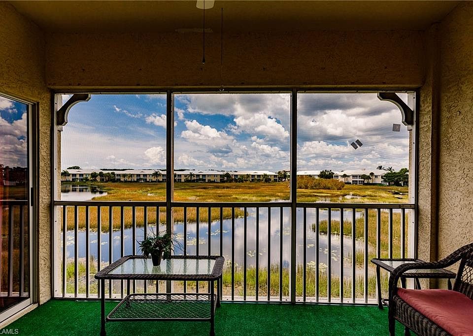 Lovely 2 bedroom - 2 Bath second floor condo with gorgeous views of the Palm trees, water and preserve. Enjoy beautiful sunsets from your screened lanai. This condo has been meticulously maintained and features laminate floors in main areas, carpet in bedroom, granite countertops in kitchen and white cabinets. Sterling Oaks is ideally located in North Naples with easy access to the famed beaches of Southwest Florida and Ft Myers International Airport. The community clubhouse is currently being renovated see attached document, it also has a Heated Pool, spa, fitness center, and world class tennis program.