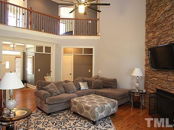 Price reduced $15,100 for Custom home on large lot with 1st floor Master w/double-sided fireplace/bath, 2 Whirlpool tubs, all new designer light fixtures, crown molding throughout, pre-wired surround sound, security system. Gourmet Kitchen w/under counter lighting, granite counters, stainless steel appliances. Maple wood floors, screened porch w/large 2 level deck w/built-in planters, plantation fans on front/back porches, landscaped irrigated lot.Great Subdivision. Just minutes from downtown Raleigh.