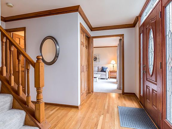 Gorgeous 4 bedroom home settled on a quiet, cul de sac street. Beautiful woodwork, kitchen with plenty of counter space and cabinetry, finished lower level, a deck that would be great for entertaining and overlooks mature trees which offers nice privacy.