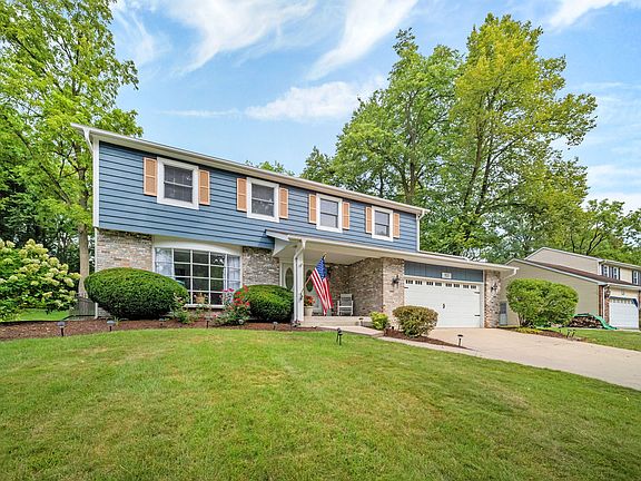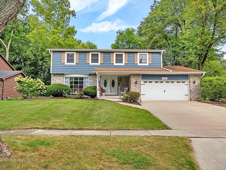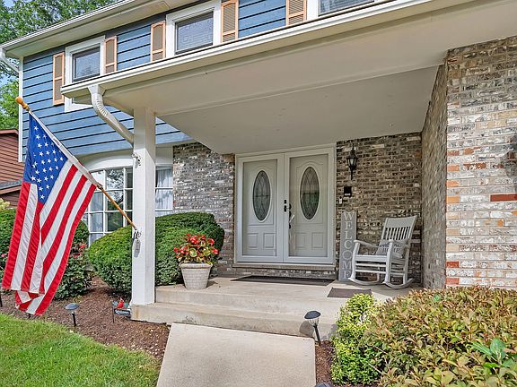Located in desirable River Oaks Estates subdivision (a short distance to the DuPage River), this beautifully detailed two-story home offers 4 Bedrooms, 2.5 Baths, 2 car attached garage and a comfortable elegance you'll enjoy every single day! From the moment you arrive, the curb appeal of the lovely landscape, brick & cedar exterior plus covered front porch with double entry doors boasting beveled glass welcomes you. The main level showcases gleaming engineered hardwood flooring throughout except for the carpeted Family Room. Your formal Living Room is enhanced by its huge almost floor to ceiling bow window while the adjacent formal Dining Room reveals an attractive chandelier plus chair railing detailing. The Kitchen will become a favorite room as it is bright, inviting and filled with warmth from the upgraded white cabinets with designer hardware, quartz countertops w/double stainless undermount sink & arc faucet, white subway tile backsplashes and stunning SS appliances including gas range with dual ovens & brand new microwave above, flush front dishwasher & French door refrigerator with bottom freezer. Entertaining will be easy as this room flows into your comfy Family Room with white brick gas fireplace with hearth & natural mantel plus abundant natural light via a full picture window plus side windows. Between the two rooms is a casual Dining area with aside full glass sliding doors leading out to your large deck, above ground pool, lower patio and generous private, fenced backyard (outdoor patio table available to purchase). This level also has a convenient and nicely detailed Powder Room. The Upper Level has 4 good sized Bedrooms including your Master Suite featuring a walk-in closet and Ensuite Bath with stand alone shower. The shared full Hall Bath has been renovated with a long double vanity, rich tile flooring and a tub shower combo. As if this was not enough, the full unfinished basement has high ceilings allowing for the addition of more living spaces. Right now it's a great amount of space for storage and a laundry area with included washer & dryer plus brand new (2024) utility sink. Other updates include: 2022: New water heater/pool pump & equipment/water softener; 2020: upgraded electric service and newly encapsulated crawl space; Roof is approximately 10 years old. Leaf Guard Gutters provide easy maintenance while protecting your exterior structure! Close to great shopping, restaurants, highways and a short drive to both Naperville & downtown Chicago events and amenities, this beautifully detailed and updated home is one you'll be especially happy to call your own!