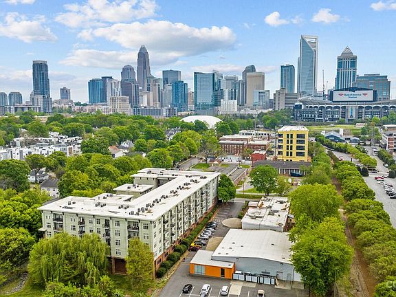 Enjoy a spacious flat located in a mature, but active and accessible part of uptown. Old-growth trees, single-family homes, and lots of greenery line the quiet street that services the 1st Row Warehouse community before it dead-ends into beautiful Frazier Park. This top floor unit sits on the west side of the building, and gets plenty of evening light, sunset balcony views towards the park, and a stunning skyline that greets you at the front door. The unit features an open floor plan with a spacious living area, full kitchen, in-unit laundry, breakfast bar, and wood floors. Amenities include gated access, secure parking, and a renovated courtyard with community grills, tables, and green hang-out spaces. Frazier Park, Panthers Stadium, Community Matters Café, and the Greenway trail are almost literally in your back yard (you like to tailgate, right?). Uptown and Johnson & Wales are an easy walk or bike ride that many residents do daily, and vibrant South End is just around the corner!