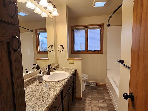 This home has a large eat in kitchen with sliding glass leading to the deck. 3 bedrooms and a bath on the main floor with a bathroom in the unfinished basement. Includes a garage with door opener. No pets. Tenant is responsible for all utilities, lawn care and snow removal.