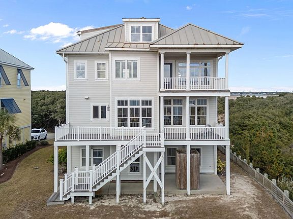 Welcome to 1101 West Fort Macon Road, where comfort meets coastal elegance. Located just steps from the ocean with a short walk to the beach, this spacious 4-bedroom, 6.5-bath home offers beautiful ocean views, an elevator, and versatile living spaces—whether you need an office, a flex room, or a theater-style bonus room for movie nights. The chef's kitchen is perfect for entertaining, while multiple decks with sweeping water views invite you to relax and enjoy the coastal breeze. A double garage and ample storage keep life organized, and the gated, private setting with only two neighboring homes creates your own serene Atlantic Beach hideaway. This property is located in an X flood zone due to the high elevation.