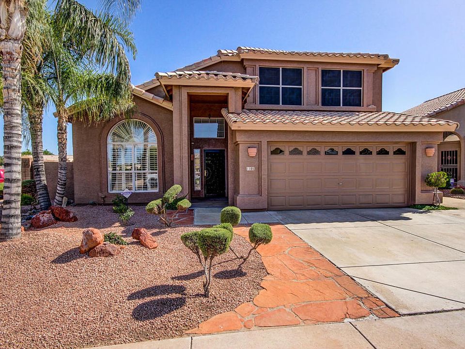 Absolutely fabulous 2-story home located on a great corner lot in the beautiful Moonlight Cove subdivision. This home has 4 bedrooms and 2.5 baths with travertine stone flooring and plush carpet throughout. Enter this home through a large family room and formal dining area with bay window. Gorgeous gourmet kitchen features granite countertops, black/stainless steel appliances, custom tiled backsplash, breakfast bar and eat-in kitchen. Grand stair case leads you up to spacious bedrooms which are all equipped with ceiling fans. Spectacular master suite has huge bay window, decorative wall niches and walk-in closet. Full size master bathroom has his and her sinks, tub and separate shower.