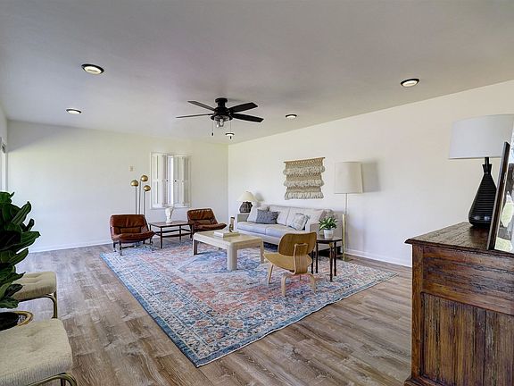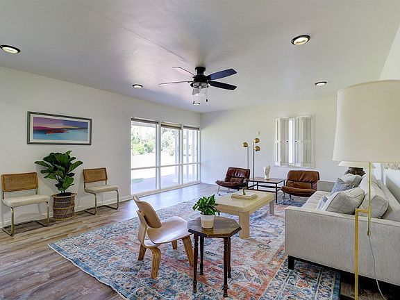 Mid Century ranch charmer on prime corner lot in beautiful Sunview Estates. Fresh painted exterior and interior spaces. Lifeproof luxury vinyl flooring at great room and new carpet in all bedrooms. Original mid century ranch character including corner windows, double height windows, ceiling detail in bedrooms and weeping mortar. Shaded back patio. Irrigated lot with plenty of room to expand or enjoy your space. Double gate access to the back yard and newer 20' x 10' asphalt shingled storage shed. Uptown central location convienient to all the best restaraunts and shopping.